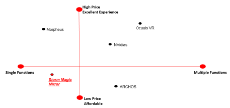The target market of Storm Company is wide, which include the people from kinds of industries. The common character of the target customers is that they all have the demand for video entertainment. So the Storm Magic Mirror is also targeting such customers. Meanwhile, the price of the Strom Magic Mirror is very low. The Storm Magic Mirror is the entry-level equipment, which is used with the coordination of the mobile phone. The selling price of Version 4 is only RMB 199, equals to USD 30.1 (Virtual Reality Deals, 2015). By contrast, the competitor Oculus is pricing its product Oculus Rift at USD 499. It could see that the price of the Storm Magic Mirror is much lower. To summarize, the Storm Magic Mirror adopts the strategy of Cost Leadership according to Porter’s Generic Strategy.