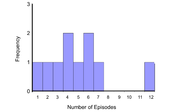 請注意,如果零假設成立(即兩組人群相等),我們預計兩個治療組中每個組的呼吸急促發作次數相似,我們預計每個組中都會有一些參與者報告發作次數較少,一些參與者報告發作次數較多。觀察到的數據似乎并非如此。需要進行假設檢驗,以確定觀察到的數據是否證明人群之間存在統計學意義上的顯著差異。
