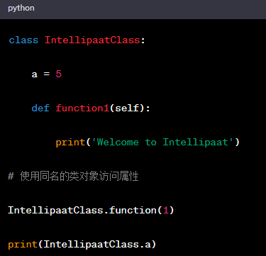 所有屬性,包括雙下劃線()的特殊屬性,如__init()和__doc__,都將由創建類聲明()創建的本地命名空間。讓我們通過一個Python類示例來理解這一點。一旦生成了類,也會生成一個類對象,用于訪問類中的屬性。