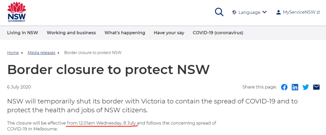 ②根據新州公共衛生法,現將整個墨爾本視為疫區。從今天起,所有墨爾本來新州的旅客將受到限制。