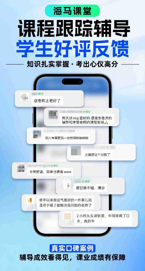 在海馬課堂,我們提供的不僅是留學生課程輔導,更是一種全面的學習支持體系。我們的專業導師將根據每位留學生的需求,定制個性化的一對一輔導計劃,幫助他們在各類課程中取得優異成績。選擇海馬課堂,讓我們一起為你的學業鋪平道路,實現夢想!