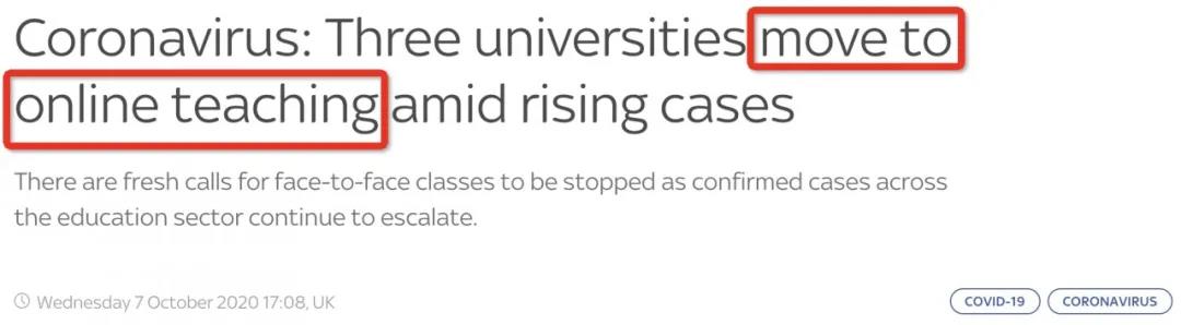 《Sky news》:隨著確診增加,三所英國大學轉向在線授課