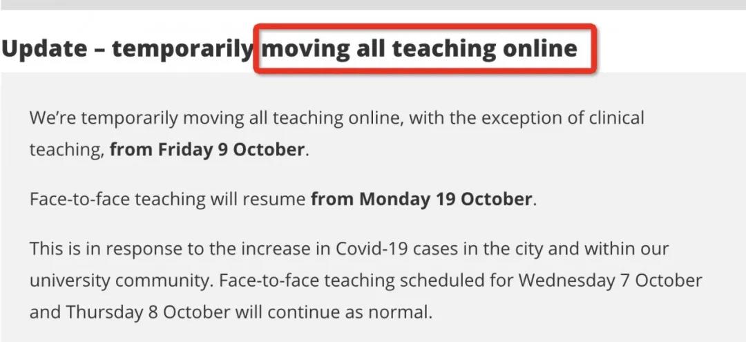 與曼大一樣,MMU也將在10月7日至10月30日期間,將絕大部分課程改為在線教學,少數臨床或實踐課程除外。