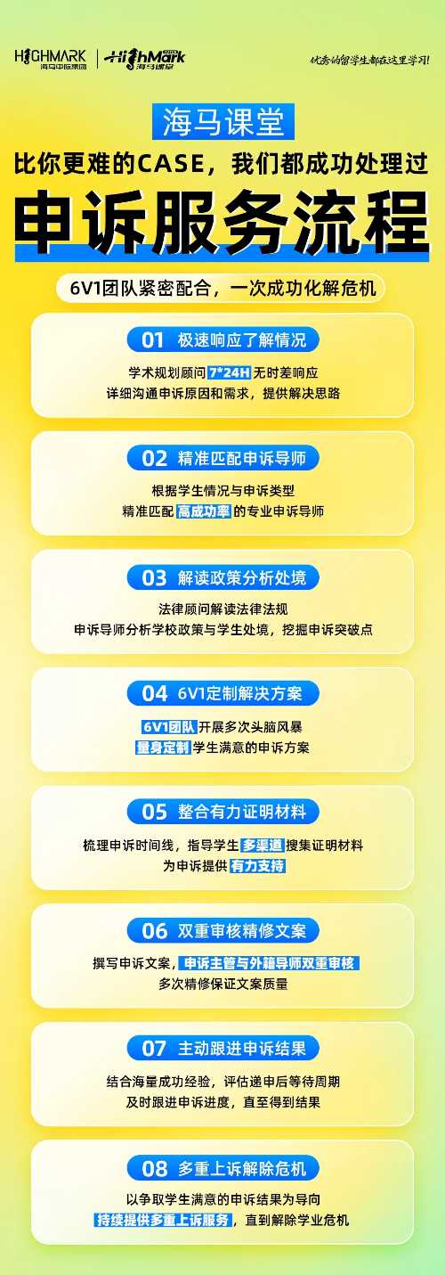 對于沒有申訴經驗的同學來說,自行申訴可能會因為對政策和流程不熟悉而導致失敗,浪費寶貴的申訴機會。海馬課堂不僅提供專業的申訴服務,還會為有疑問的同學提供免費的專業建議,充分體現了其專業性和對學生負責的態度。