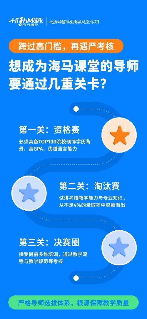 海馬中行業首推雙師模式,為留學生學業保駕護航。陪伴導師具有留學背景且教學經驗豐富,懂學生痛點;教學出身的導師能提供專業學習規劃,精準避坑提升成績。該模式還為學生明確短期學期目標和長期畢業求職規劃,陪伴導師在線守護,讓留學之路清晰不迷茫。導師給予全面指導,覆蓋學習、升學和就業,毫無保留分享經驗,助力學生全面發展。