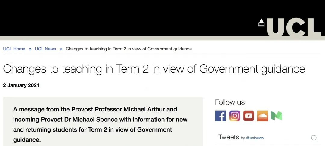 另外,UCL表示會在2月初提供關于第二學期更多的教學計劃。學生對于課程安排有任何疑問,可以直接聯系自己的院系。
