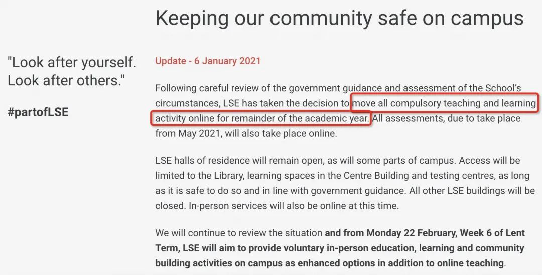但是2月22日之后,LSE將為學生提供接受校園教學的選擇,學生可以自主選擇上課方式。