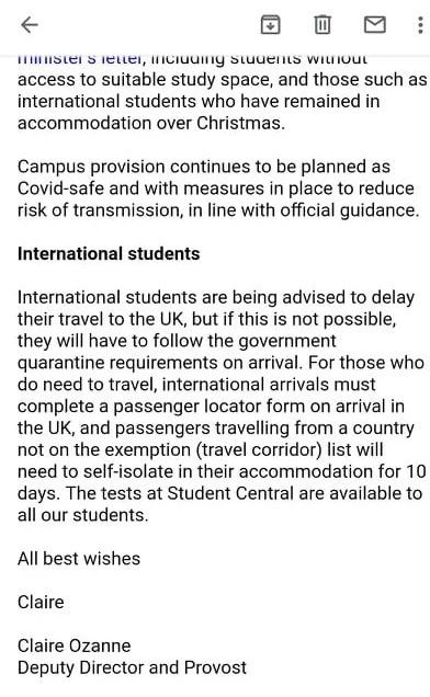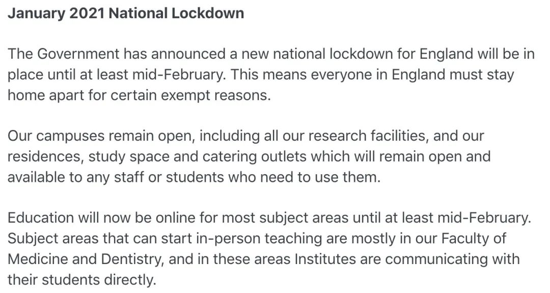 為了保證學生的安全,UCL讓學生最早2月中旬才可以返校,甚至有可能推遲至3月底之前返校。