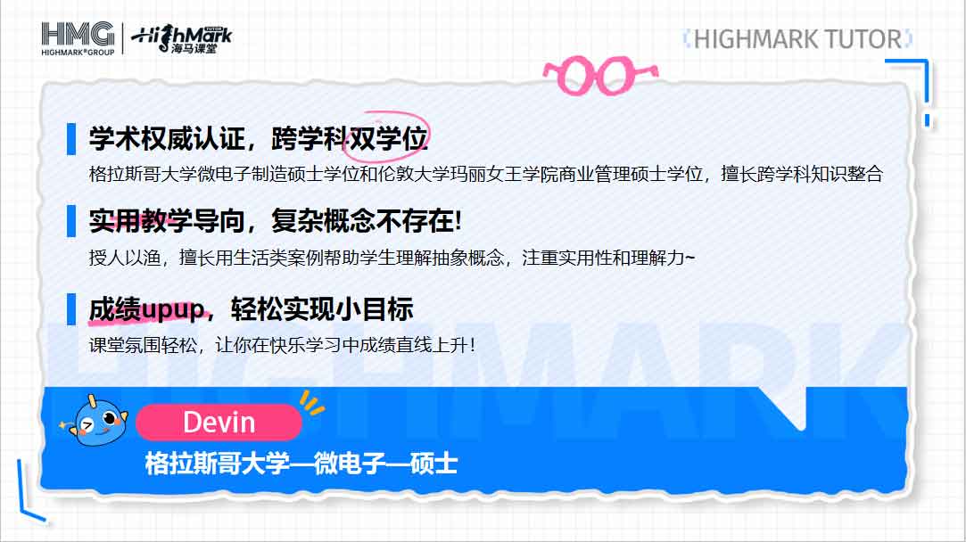 海馬課堂始終堅持嚴(yán)選導(dǎo)師,確保每位導(dǎo)師不僅具備一流的學(xué)術(shù)背景,更擁有切實可行的教學(xué)方法。無論你處在哪個學(xué)科領(lǐng)域,都能在這里找到合適的導(dǎo)師,助你打破學(xué)習(xí)瓶頸、穩(wěn)步提升成績。現(xiàn)在就咨詢海馬課堂,讓學(xué)習(xí)之路更加高效、順利!