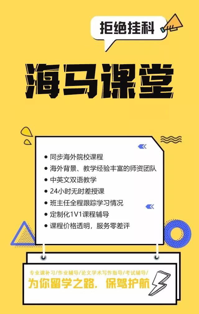 海馬課堂是一家留學生課業學術輔導中心,在線1V1視頻輔導、答疑,解決專業知識、作業、論文等疑難問題!在線輔導課程可同步海外院校課件,班主任全程跟蹤學習情況,根據不同學生情況進行定制化輔導,在嚴重的拖延癥,只要你想學,海馬課堂統統幫你解決!這都不是事!