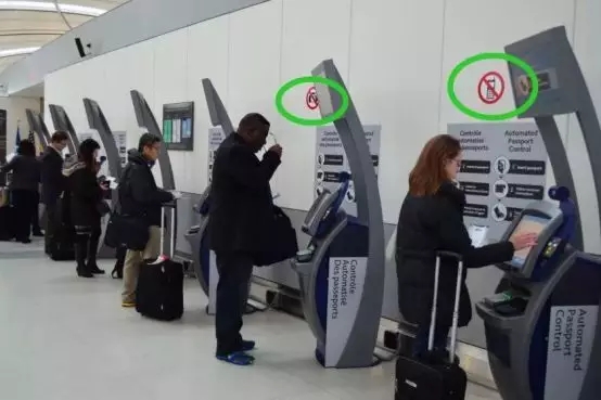 其實,不僅僅是過海關的時候,只要墻上貼有這樣的標識,在這個區域內,你都不能使用手機。