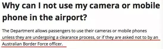 這絕對不是危言聳聽哦,據澳大利亞內政事務部(Department of Home Affairs)網站發布的相關規定,任何形式的通訊和拍攝設備,在機場、海港的海關和邊境控制區內,特別是在通關過程中,都是禁止的!