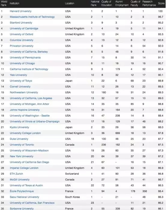 美國大學在的表現依舊是非常強勁的,自2012年以來,美國大學均在世界十強占據了八個席位。在今年所有2000所入榜大學中,美國高等院校共享有358席名額,所有常春藤聯校都排名在世界前50名以內。