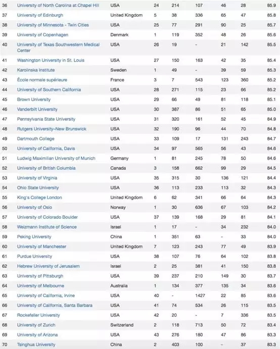 加拿大本次共有4所院校上榜前100名,分別是多倫多大學、麥吉爾大學、英屬哥倫比亞大學、阿爾伯特大學。