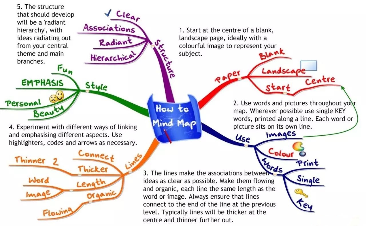 對于那些能夠劃分為類別(如日期、事件、影響、相似度、優(yōu)/缺點等)的主題知識和信息來說,圖表方法非常有用,可以對比關(guān)聯(lián),加深記憶。
