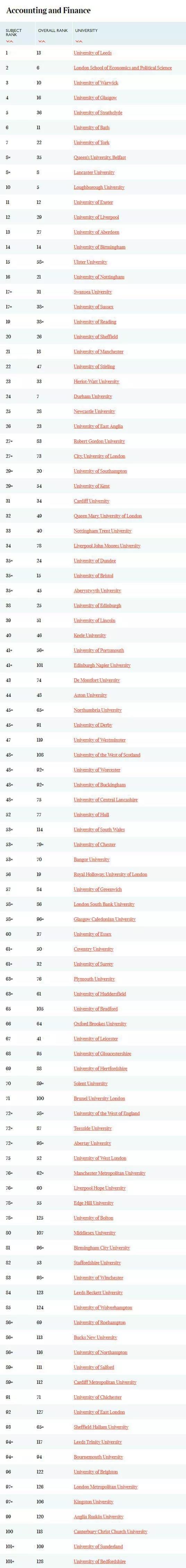 下面給同學們貼一下“會計與金融專業2020年TIMES英國大學排名”。速來圍觀吧!